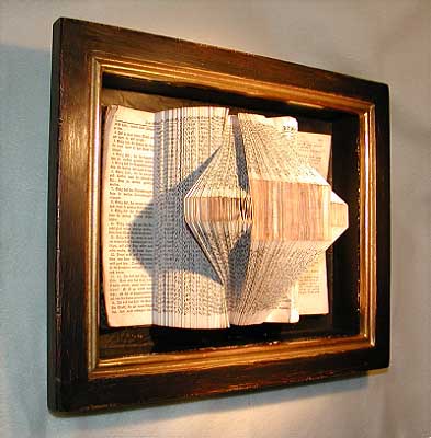 Technik: Buch gefaltet in Form eines breit gezogenen Kreuzes;