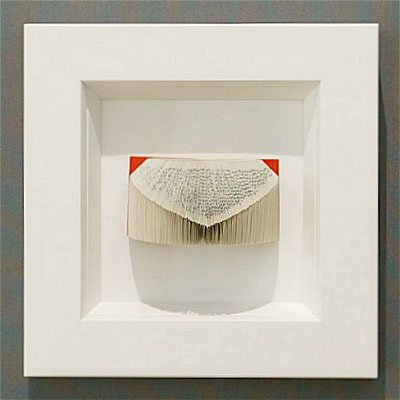 Technik: Minibuch gefaltet; die beiden Ecken sind rot bemalt.
